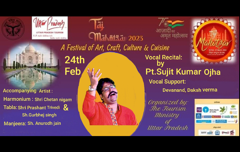 "There is music of the soul in the soil of Bihar- ‘Sujit Kr Ojha' is a true example of that. Born in 1977, Sujit naturally took to music at the age of eight. Since then he started appearing on stage in several performances of folk music. After being initiated into folk music by his first guru and grandfather Shri Bhagwan ji Ojha, he subsequently started learning classical music from Shri Om Prakash Rai, Pandit Ramkant Tiwari (Kanta Guru) and Shri Dharampal. Since last 15 years, he has been under the tutelage of renowned vocalist and Principal of Gandharva Mahavidyalaya New Delhi, Padmashri Pandit Madhup Mudgal.